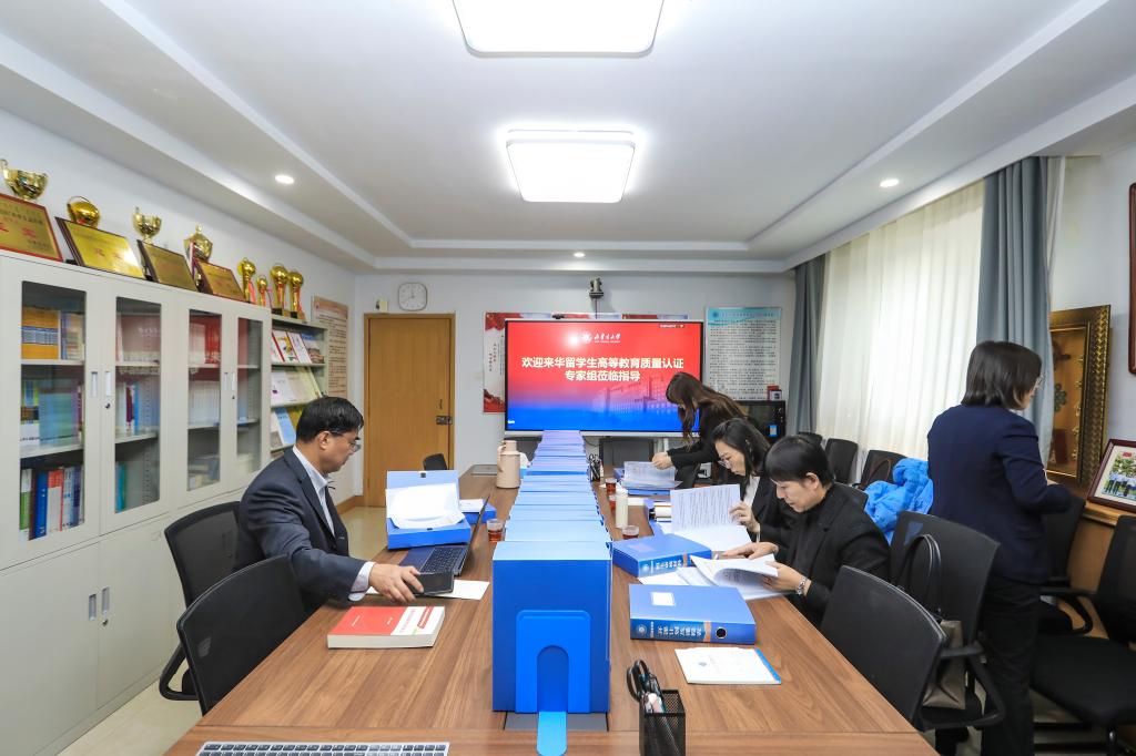专家组一行实地走访了学校心理健康教育与咨询中心、学生食堂、桃李创新空间、图书馆、多语种人工智能技术重点实验室及国际教育学院,集中查阅了留学生招生、教学、管理等相关档案材料,全面掌握了学校来华留学教育的制度建设和执行情况。认证专家分别与学校分管领导、职能处室、培养学院、留学生管理干部、任课教师和留学生代表进行访谈,并深入课堂实地考察,全方位了解了学校来华留学生教育管理和培养情况。