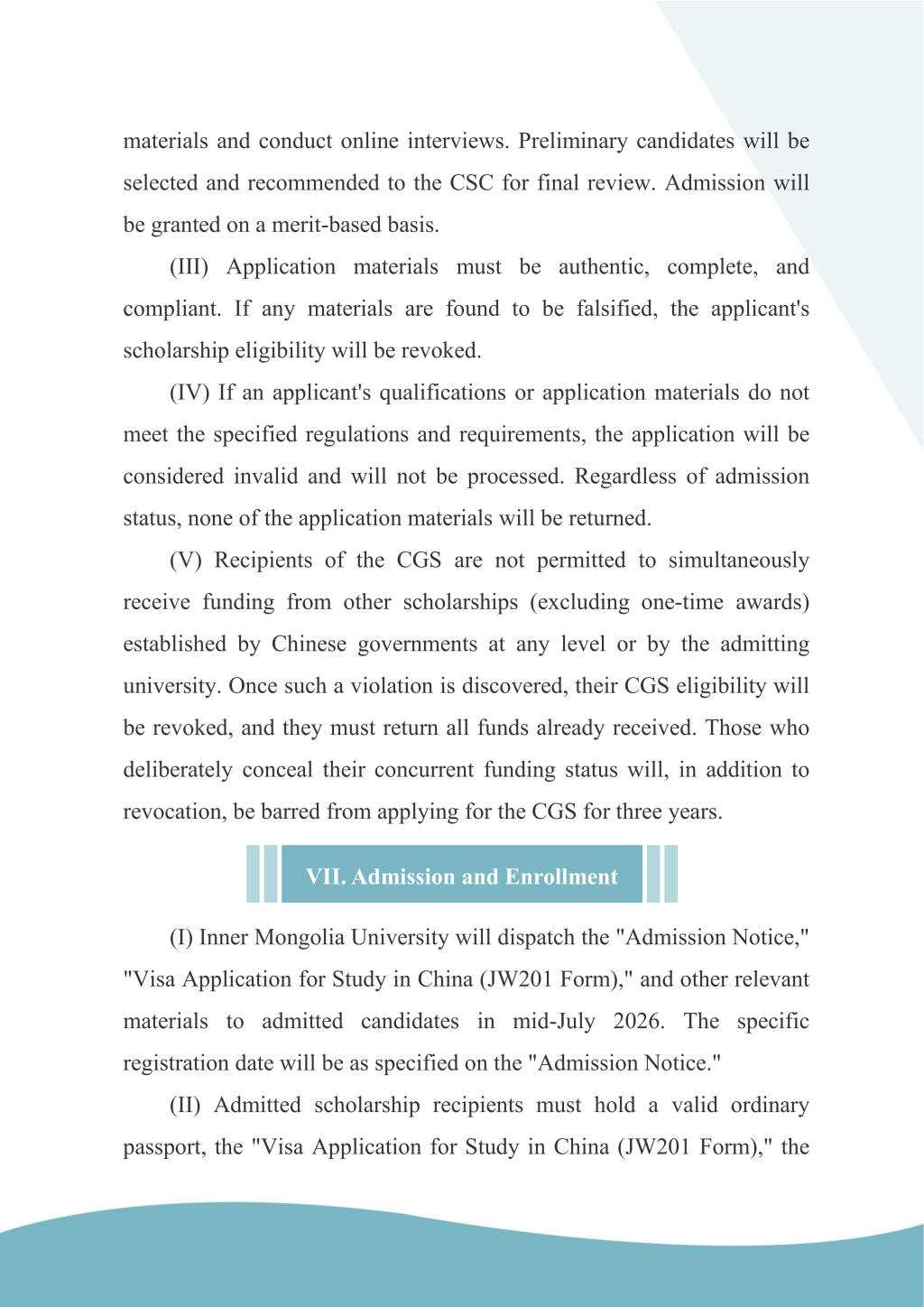 内蒙古大学2026-2027学年中国政府奖学金“高水平研究生”项目招生简章