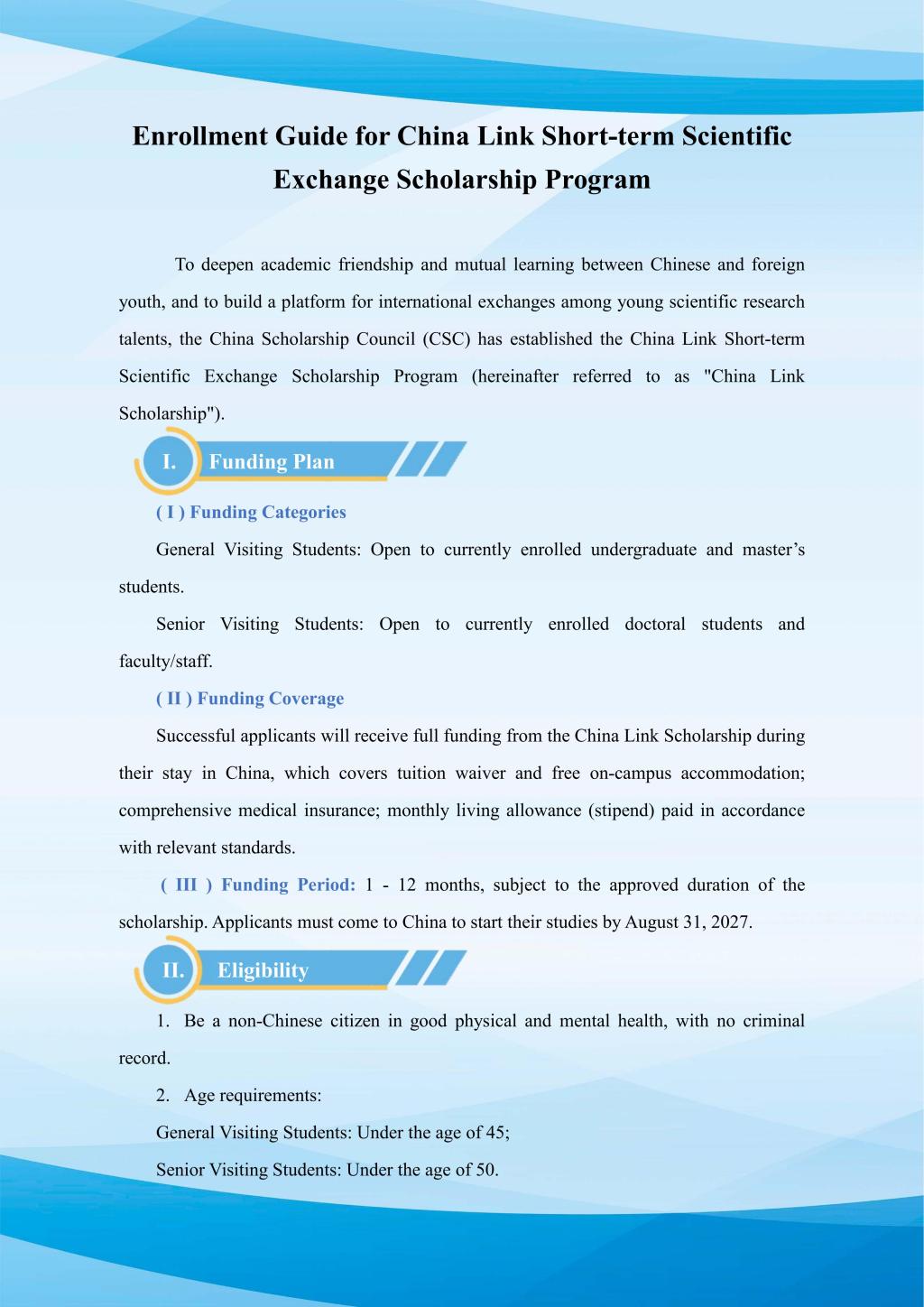 Enrollment Guide for China Link Short-term Scientific Exchange Scholarship Program