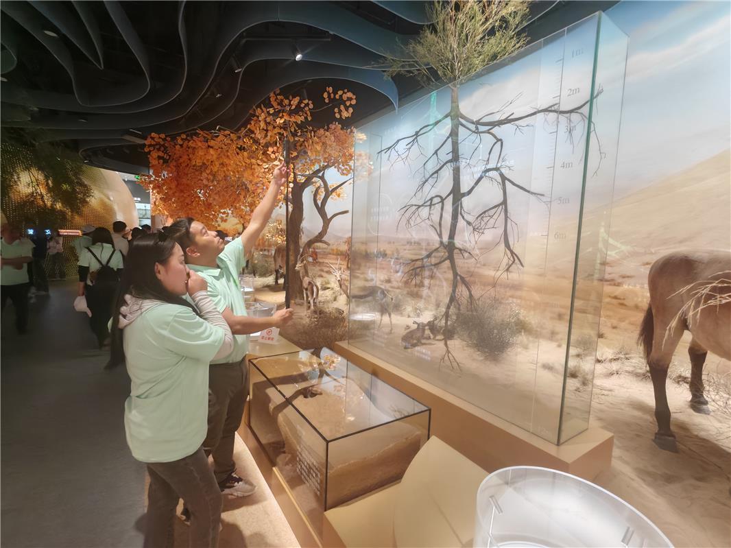 在恩格贝生态示范区,同学们一同挥锹挖坑、栽植树苗、提水浇灌,将一抹抹新绿延展至茫茫沙地之中。大家走进沙漠科学博物馆,学习全球干旱地区荒漠化治理的科学知识,了解恩格贝生态治理的成功案例,并积极参与中国自然地理国情知识有奖竞答,在实践互动中切身感受中国生态治理的显著成效。