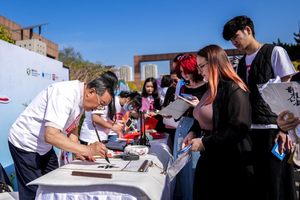 中文承载着千年华夏文明的记忆,是连接古今、连接世界的桥梁 。国际中文日已成为全球中文爱好者的节日和世界了解中国的窗口 。今年“国际中文日”主题为“中文:点亮多彩梦想”。我校活动以中国古典名著《西游记》为文化主线,采用“通关文牒集章”形式,设置甲骨文猜字、成语迷阵、断句挑战、诗词飞花令、皮影戏体验、非遗漆扇制作及书法题名等互动环节。非遗传承人现场演绎《西游记》故事皮影戏,留学生们亲手操作体验;在汉字、成语、诗词等趣味关卡中锤炼语言技能;通过漆扇、书法创作感受传统中华工艺与书画之美。